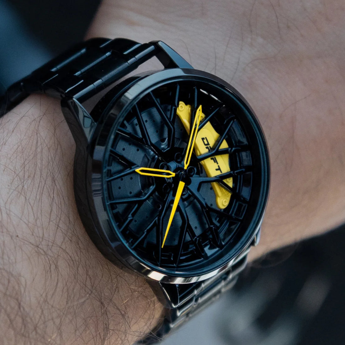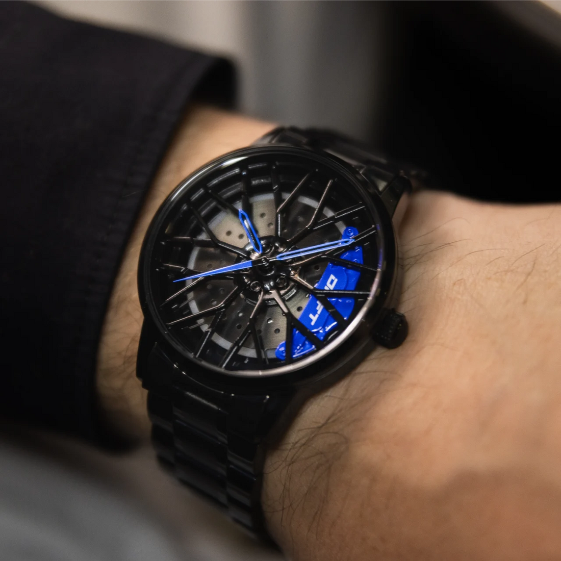 • Design Único: Cada relógio é uma peça original, feita a partir de jantes de carros esportivos, refletindo um verdadeiro espírito automobilístico.